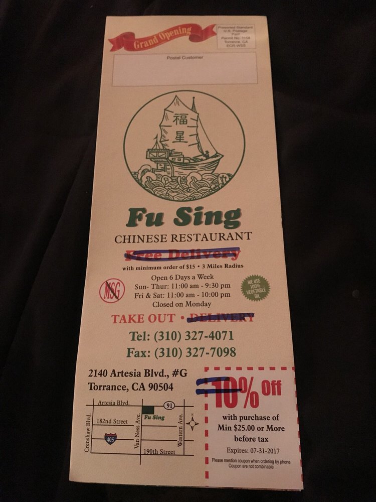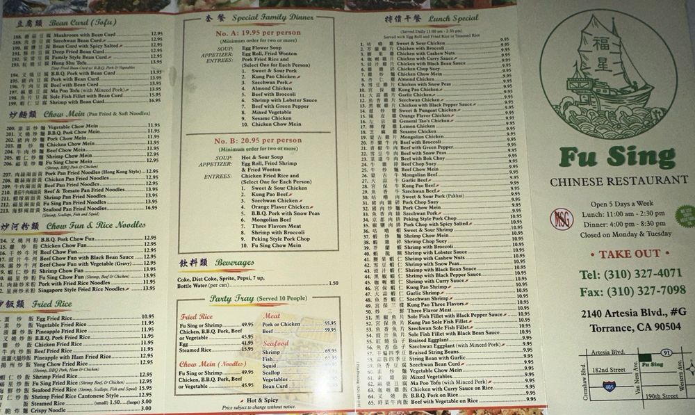 Fu Sing, a local favorite for authentic Chinese takeout, offers a wide variety of dishes that are consistently well-prepared and delicious. Customers rave about the General Tso's chicken, fried squid with jalapeƱos, baby bok choy with black mushrooms, almond duck, and pork egg rolls. The menu includes hard-to-find dishes like Walnut Shrimp, attracting food enthusiasts from all over. With fresh ingredients and sizable portions, Fu Sing provides great value for its price. The restaurant's casual ambiance and efficient service make it a convenient option for a quick and satisfying meal. Don't forget to try the popular egg rolls and other classics like broccoli beef, chow mein, and orange chicken. Fu Sing is a must-visit for anyone craving traditional Chinese flavors in the South Bay area.